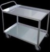 Masa transport alimente cu structura din otel inoxidabil Aspect luciu oglinda Roti pivotante cu bandou de cauciuc, Ø125mm din care 2 cu sistem de franare 2 blaturi din otel inoxidabil cu margini indoite in sus Masa de transport alimente are 1 maner de prindere si manevrare Dimensiuni masa: L=90 x l=60 x h=80 cm...