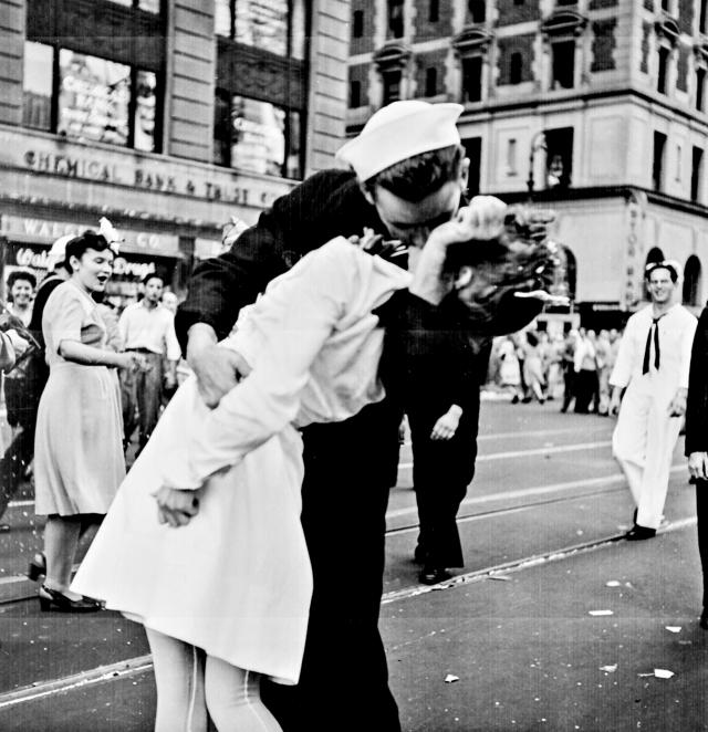 Fotografia "V-J Day in Times Square" ("Ziua Victoriei în Times Square"), realizată de Alfred Eisenstaedt şi devenită celebră prin publicarea în revista "Life", a imortalizat un marinar sărutând o femeie îmbrăcată în rochie albă în timpul manifestărilor legate de capitularea Japoniei după Al Doilea Război Mondial. Scena s-a petrecut în Times Square din New York. Autorul fotografiei nu a avut timp să identifice protagoniştii fotografiei şi, de-a lungul timpului, identitatea celor doi a fost subiect de dispută, notează www.smithsonianmag.org.