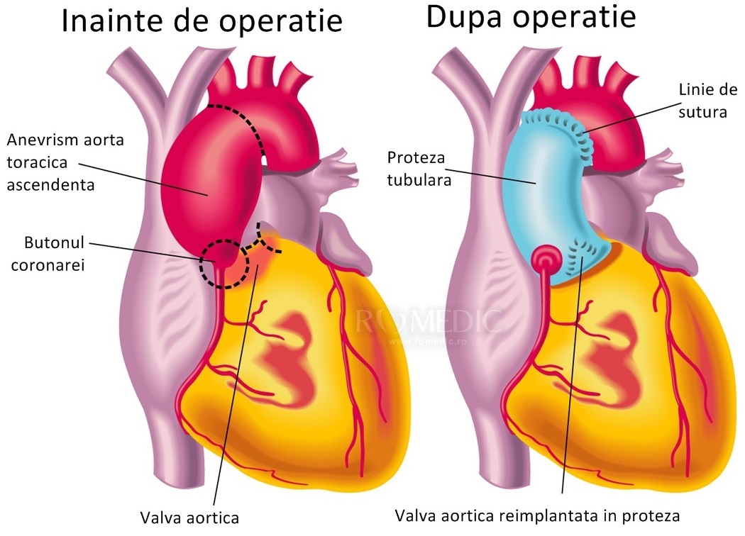 - Dilatatie de aorta ascendenta (6 cm), insuficienta aortica severa, ocluzie de vase coronaroene