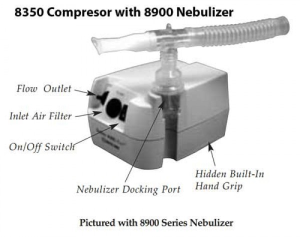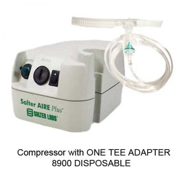 Compresorul Salter AIRE Elite furnizează o sursă de aer comprimat pentru terapia cu aerosoli. Este utilizat împreună cu un nebulizator (pneumatic) cu pulverizare pentru a produce aerosolii medicinali ce vor fi inhalați de către pacienții copii sau adulți cu simptome respiratorii. Nebulizatorul este livrat cu borcan de nebulizare si un adaptor T cu piesa de gura sau ,optional, cu masca aerosoli care se monteaza direct in stutul de iesire al compresorului.
