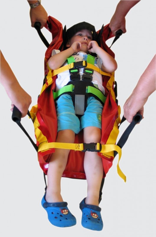 Sistemul cuprinde ham pelvian culisant care permite fixarea optima a pacientului in functie de dimensiunile lui anatomice (greutate max. 22 kg si inaltime max. 130 cm)