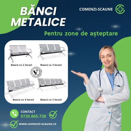 Băncile pentru sălile de așteptare cu structură metalică oferite de comenzi-scaune.ro sunt o soluție practică, confortabilă și estetică pentru o varietate de spații publice și comerciale, spitale, cabinete medicale contribuind la crearea unui mediu prietenos și funcțional pentru utilizatori.