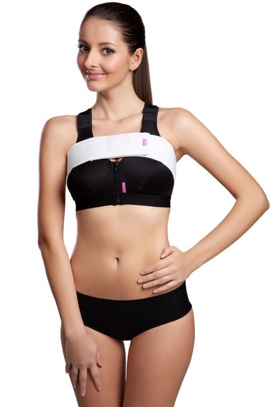 - Banda trebuie să fie purtată perfect deasupra sânilor pentru a asigura o compresie optimă