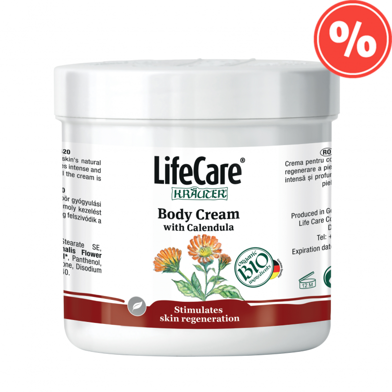 Body Cream with Calendula (Crema De Corp Cu Galbenele, BIO) - 250ml. Krauter®, este cicatrizanta, calmeaza, regenereaza si hidrateaza pielea