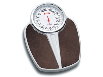 Cantar mecanic cu design clasic: cu un cadran mare si clar si o carcasa robusta din otel.