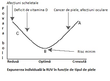 - punctul B reprezintă expunerea optimă la radiaÈ›iile ultraviolete (RUV), caracterizat prin adoptarea metodelor de protecÈ›iei solară, adaptate în funcÈ›ie de indicele UV È™i tipul de piele. (6)