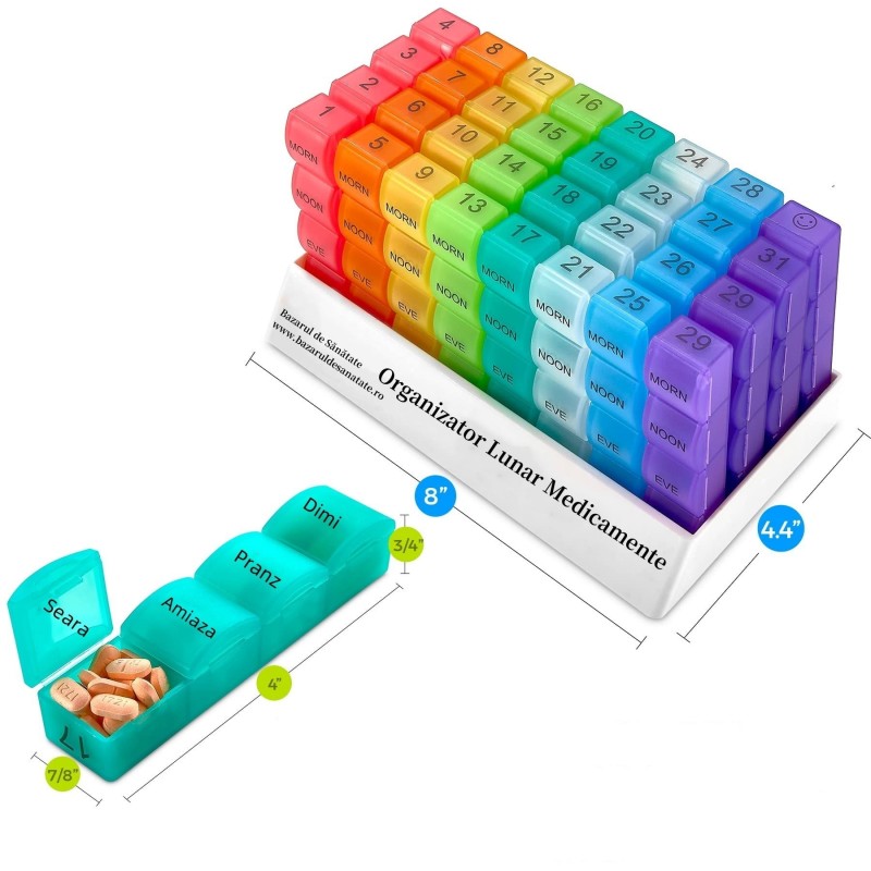 Fiecare cutie de o zi este detașabilă și poate fi luată în poșetă sau în buzunare atunci când vă deplasaţi.