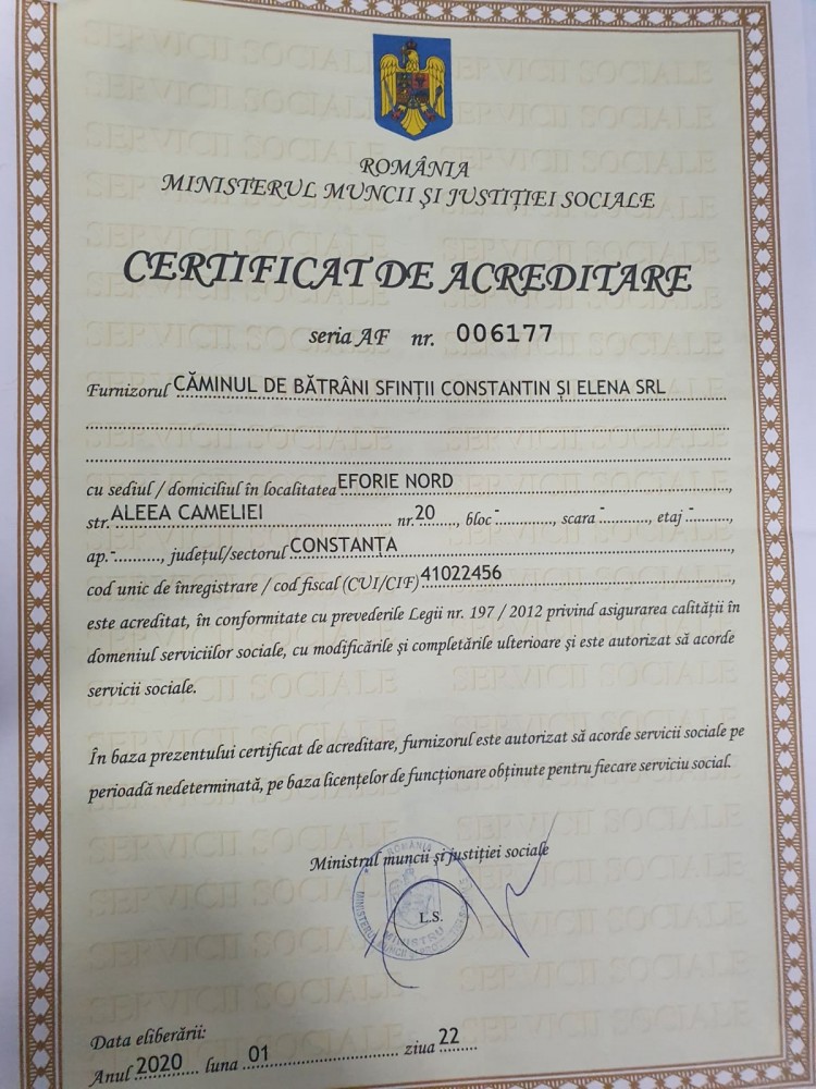 Căminul de bătrâni Sfinții Constantin și Elena din Eforie Nord, Județul Constanța oferă cazare pentru persoanele vârstnice, masă, îngrijire adecvată.