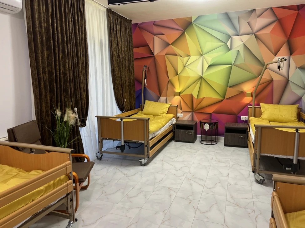 Spațiul comun constă în: living spațios, sală de mese, sală de activități recreative, sala de kinetoterapie.