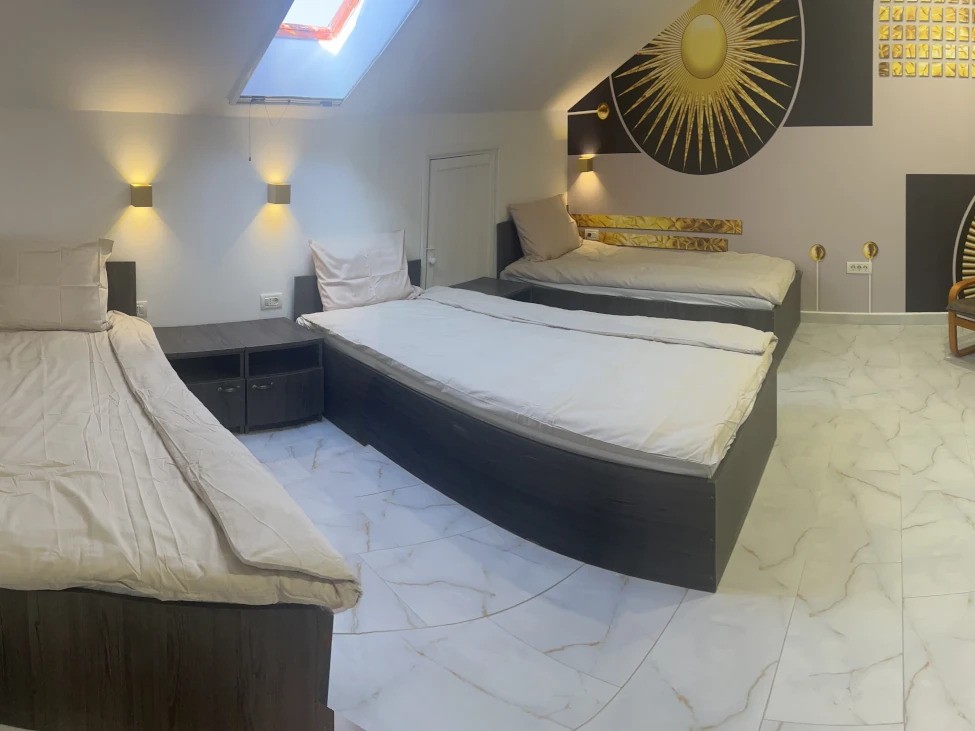 Centrul dispune de 33 de locuri de cazare în 6 camere de câte 3, 4, 5, 6 persoane. Camerele sunt dotate cu TV. Există 4 băi comune.