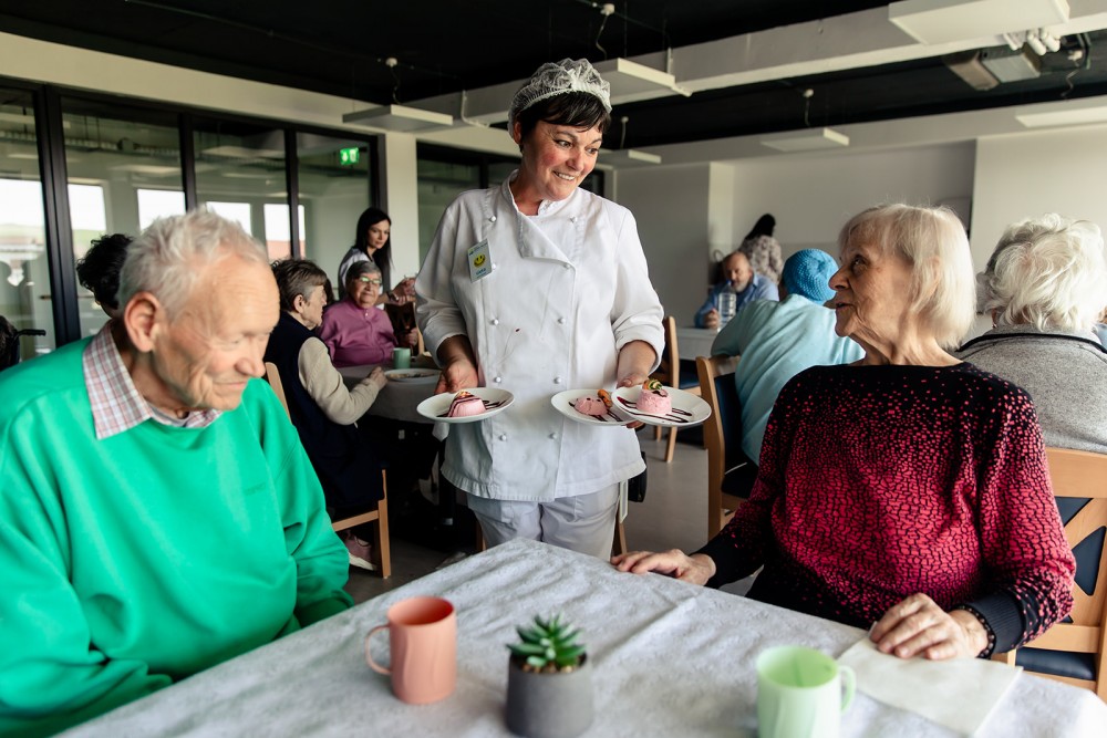 Cu ocazia aniversărilor rezidenților se servește masa într-un cadru festiv, cu un meniu special și tort. Sărbătoritul primește flori sau mici atenții din partea rezidenței. Rezidentul poate ieși oricând din centru însoțit de familie, pentru ce perioadă dorește, iar accesul familiei la activitățile interne este încurajat.