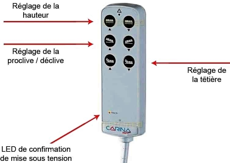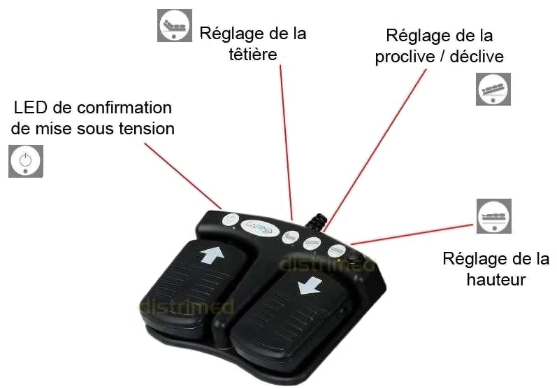 ajustare electrica controlata din telecomanda pentru sectiune sezut pe inaltime 49~89 cm si Trendelenburg +/- 20o, respectiv sectiune dorsala gyneco 85o