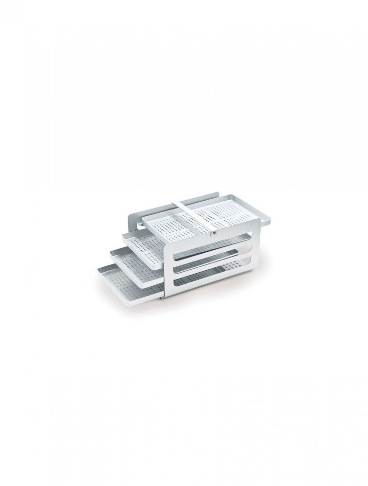 Livrat cu 1 suport pentru tavă, închis, 4 tăvi din aluminiu, 1 cheie cu dublă utilizare pentru extragerea tavii și reglarea ușilor, furtunuri de încărcare și descărcare a apei, burete de curățare a camerei și sistem integrat de osmoză.