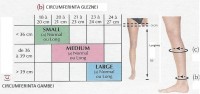 Masurile sunt trei si anume SMALL, MEDIUM si LARGE conform tabelului de mai jos, in urma masuratorilor pe care trebuie sa le faceti la piciorul Dvs, la glezna, pulpa inferioara a piciorului in partea superioara sub genunchi si la nivelul coapsei: