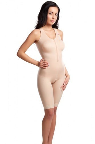 COMPOZIȚIE MATERIAL: 72% POLIAMIDA, 28% ELASTAN Descrierea produsului • Îmbrăcăminte completă pentru dama fără mâneci care acoperă torsul, pieptul și se extinde până deasupra genunchilor. Potrivit pentru utilizare după o intervenție chirurgicală plastică abdominală, liposucție abdominala, a spatelui, a zonei pelvine, a feselor, a șoldurilor, a flancurilor și a coapselor, intervenții chirurgicale ale sanilor (adică mărirea sânilor, reducerea sânilor, reconstrucția sânilor, ridicarea sânilor chirurgie, mastopexie și mamoplastie) • Această îmbrăcăminte este, de asemenea, recomandată ca parte a terapiei de compresie post-sarcină pentru a ajuta la micșorarea abdomenului postpartum. Refacerea poziției musculare abdominale pre-natal și reducerea cicatricilor • Cupele pentru sani sunt modelate de cusături plate, ușor cusute, care nu ating zona țesutului cicatricial și sunt făcute astfel încât să nu irite sânii după operație • Bretelele de umăr cu patru rânduri de copci metalice reglabile permit reglarea poziției sânului după cum este necesar • Îmbrăcămintea este întărită în zona abdomenului cu o țesătură dublă pentru o compresie optimă în zonele cheie • Picioarele se întind deasupra genunchilor și sunt finisate cu o dantelă moale, astfel încât îmbrăcămintea să nu se rasuceasca • Partea din față a îmbrăcămintei este fixată cu fermoar • Există o deschidere igienică pentru confortul întregii zile și pentru a usura utilizarea toaletei; lenjeria proprie poate fi purtată în afara hainelor Material • Material CLASSIC - fabricat exclusiv pentru marca LIPOELASTIC® • Contine nanoparticule antibacteriene de argint care previne infectiile si inflamarea ranilor • Materialul a primit certificatul Oeko-Tex, care garantează absența substanțelor dăunătoare sau alergene (cum ar fi latexul etc.) • Compoziția materialului: 72 % POLIAMIDA, 28 % ELASTANE Închidere • Există o închidere cu fermoar la nivelul suportului frontal cu copci metalice de susținere, pentru a facilita ușurința de a se îmbrăca post operațional și nu numai • Bretelele de umăr sunt reglabilecu avand patru rânduri de copci metalice Mai multe detalii • Eticheta textilă este cusută pe exteriorul articolului de îmbrăcăminte pentru a evita mâncărimea neplăcută a pielii din această zonă [ghid_masuratori]