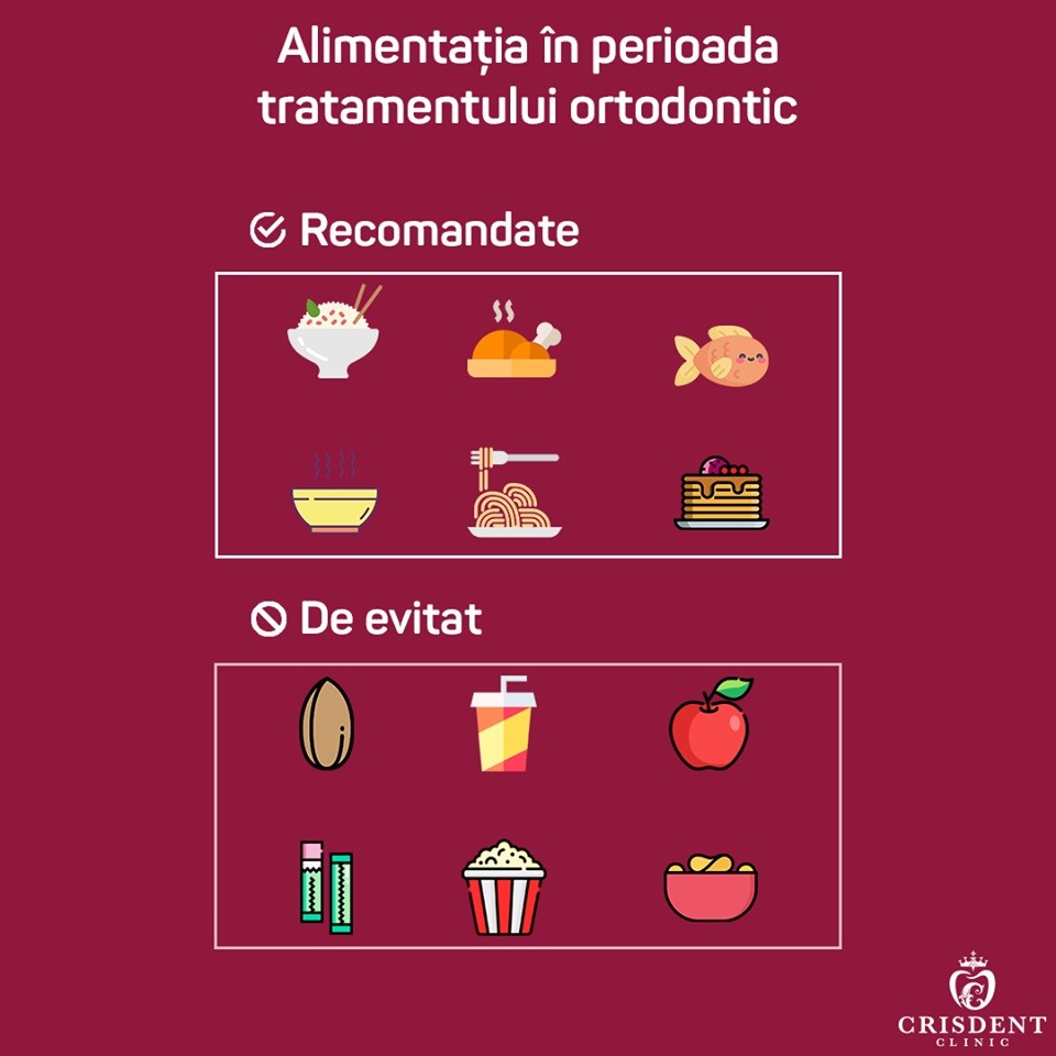 Unul dintre cele mai importante aspecte atunci când vine vorba de tratamentul ortodontic este alimentația. Adesea, din cauza restricțiilor alimentare, dar și a ușoarelor dureri existente în primele zile de purtare a unui aparat dentar, pacienții devin confuzi și nu mai știu ce pot să mănânce.