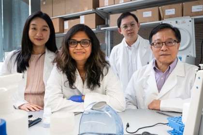 foto: Julie Park, Lavanya Saxena, Mingming Cao and Gang Bao. Photo by Jeff Fitlow