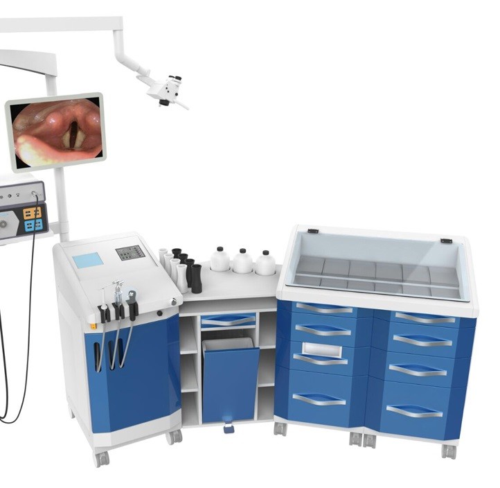 3.Modul instrumentar cu 8 sertare de inaltimi diferite si un suport pentru instrumente sterile, compartimentat, cu un capac rabatabil transparent din plexiglas.