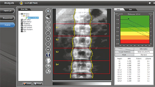 Analiza ortopedică: exclude automat protezele de şold, fixările metalice şi a altor artefacte, pentru obţinerea unor rezultate mai exacte în legătură cu densitatea osoasă.