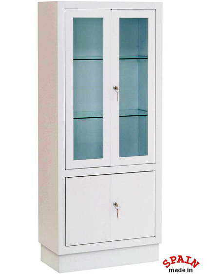 doua usi metalice prevazute cu incuietoare la nivel inferior; polita interioara metalica pozitionata la inaltime fixa