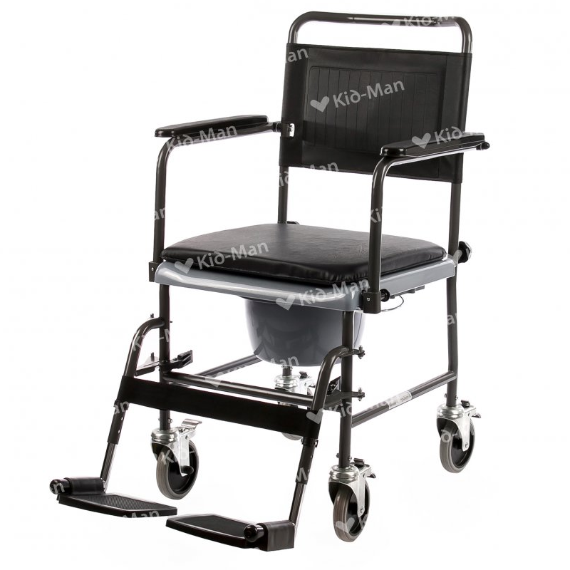 - Funcționalitate 3-în-1: Poate fi utilizat ca toaletă independentă (lângă patul pacientului) folosind vasul colector, poate fi poziționat direct deasupra vasului de WC standard sau poate servi ca scaun de transport în interiorul locuinței.