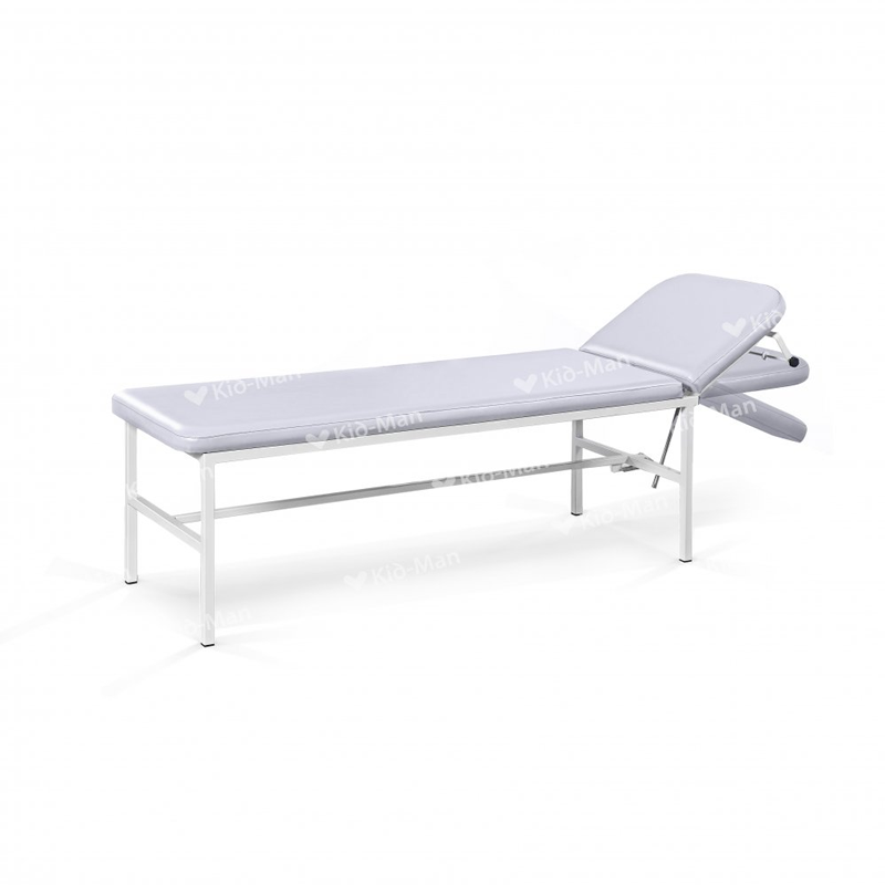- Secțiune Cap/Spătar Reglabilă: Canapeaua dispune de un spătar mobil care poate fi reglat prin intermediul unui sistem cu cremalieră, permițând poziționarea pacientului de la orizontală până la un unghi de aproximativ 45-60°.