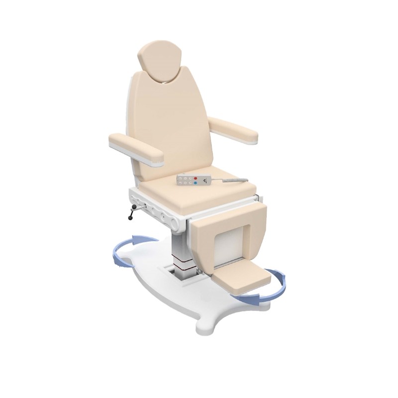 ENT1-E este un scaun de examinare specializat, proiectat pentru a oferi medicului ORL-ist o libertate de mișcare absolută și un acces facil la pacient din orice unghi. Caracteristica principală a acestui model este sistemul rotativ combinat cu cele 3 motoare electrice, transformându-l într-un instrument de înaltă precizie pentru diagnostic și mici intervenții: