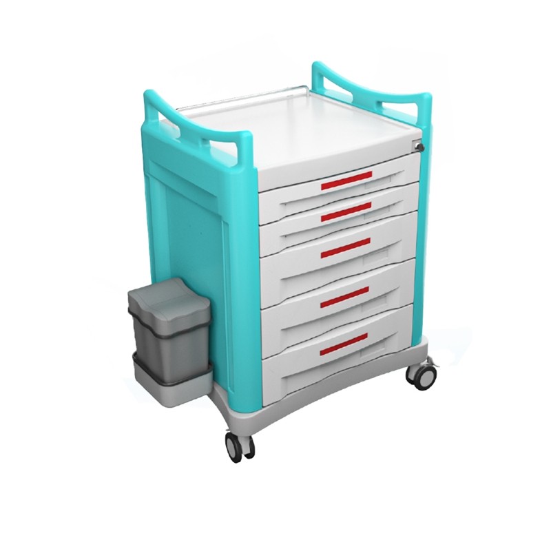 - Compartimentare Internă: Sertarele sunt proiectate pentru a menține ordinea perfectă, reducând timpul necesar pregătirii setului de pansare.