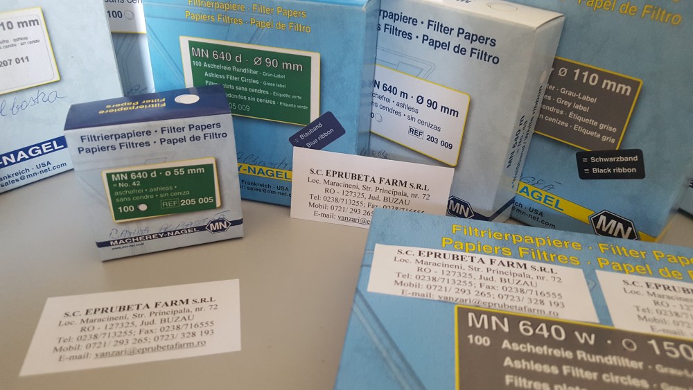 HARTIE DE FILTRU CANTITATIVA MACHEREY NAGEL 100 rondele, banda alba / albastra / neagra