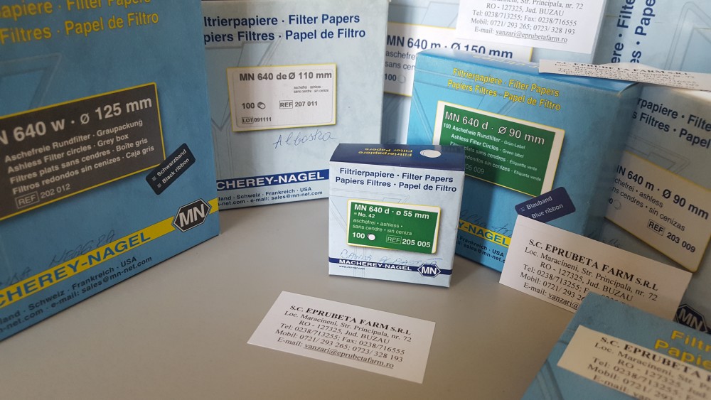 Banda albastra este pentru filtrare lenta - Link: ftp://ftp.mn-net.com/filtration/filter_paper_data_sheets/MN-640d-Pd.pdf