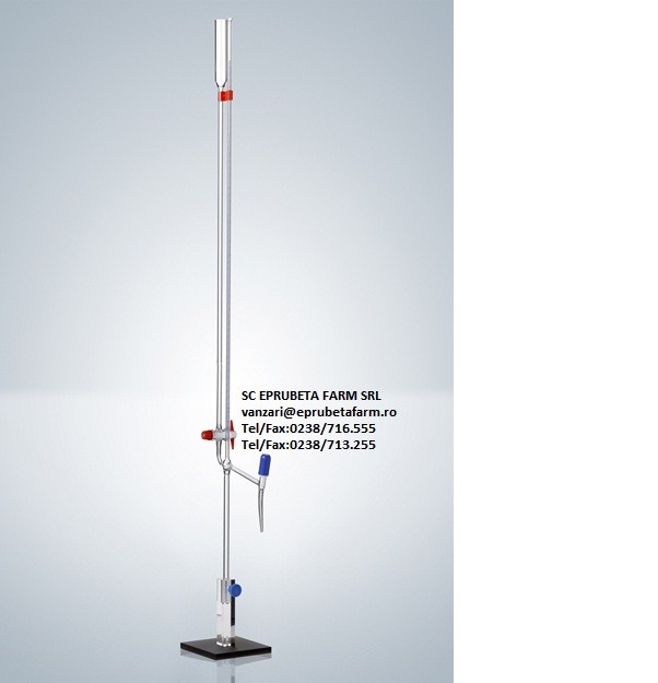 Microbiureta 10 ml, Clasa AS, subdiv. 0.02 ml, toleranta ± 0,02 ml, linie Schellbach, cu robinet drept sau lateral si intermediar din PTFE, Certificat de Etalonare pe lot de produs. GERMANIA