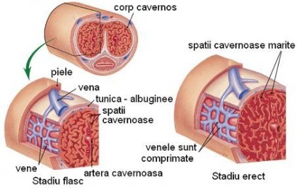 Stimularea parasimpatica determina vasodilatatie in teritoriul penian si cresterea fluxului sangvin in tesutul cavernos iar cea simpatica este implicata in determinismul tumescentei si detumescentei peniene.