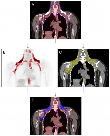foto: Imagini care arată detectarea și segmentarea țesutului adipos maro pe FDG PET pentru a măsura volumul total de țesut adipos maro. SNMMI