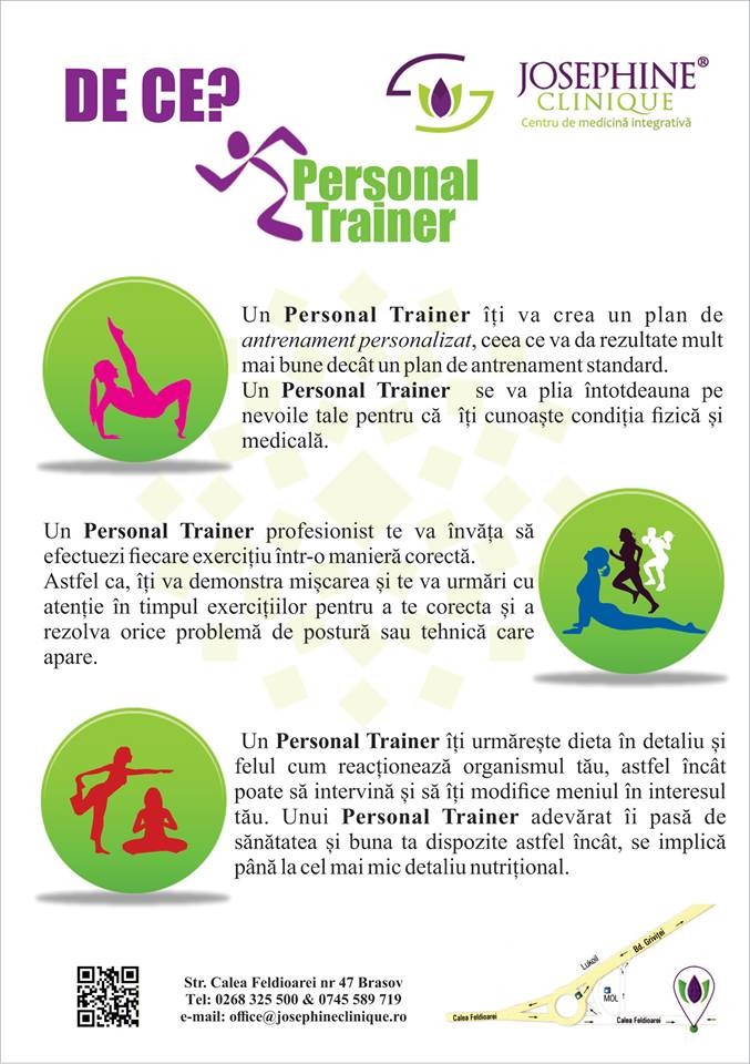 Acesta se asigură că antrenamentul este plăcut și bine tolerat de către dumneavoastră, va alege intensitatea optimă în funcție de forma fizică, tipul somatic, vârsta și sex și va organiza ședințele de antrenament astfel încât acestea să fie atractive, eficace și, nu în ultimul rând, cu rezultate.