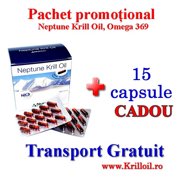Promotie limitata la Omega 369.Pentru Ulei de Krill Oil la cutia de 180 de capsule mai primiti 15 capsule GRATIS.