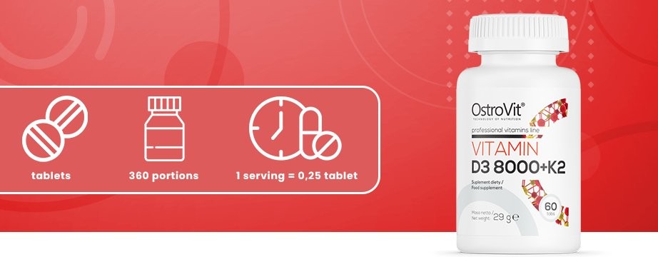 Efectul deficitului de vitamina D3 și K2 este în principal dezvoltarea bolilor osoase, cum ar fi rahitismul și osteoporoza. În plus, lipsa vitaminei D3 poate slăbi mușchii, poate provoca dureri osoase, infecții frecvente, căderea părului, precum și oboseală și proastă dispoziție. Alegeți supliment alimentar OstroVit Vitamina D3 8000 UI + K2.