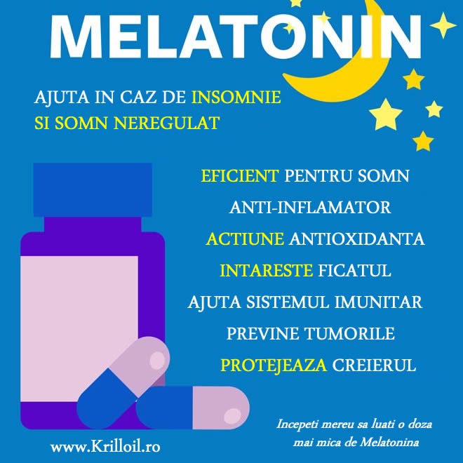 Melatonină 4000mcg beneficii: Melatonină 4 mg este un supliment alimentar sub forma de comprimate destinate persoanelor care au probleme de somn. Daca utilizati produsul zilnic, puteti regla ritmul circadian, precum si sa va puteti bucura de un somn sanatos si linistit.