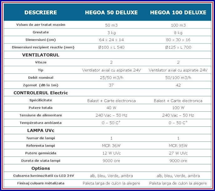 -model ptr. incaperi de 100 mc cu lampa 95W: 1 498 € plus T.V.A.