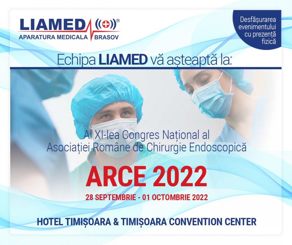 LIAMED, in parteneriat cu SonoScape, va fi prezent, in perioada 28 septembrie - 1 octombrie, la cea de a XI-a editie a Congresului National al Asociatiei Romane pentru Chirurgie Endoscopica – ARCE 2022, care va avea loc la Timisoara. Tema generală a congresului este „Minimal Invasive Surgery – Knowing better, doing better”.