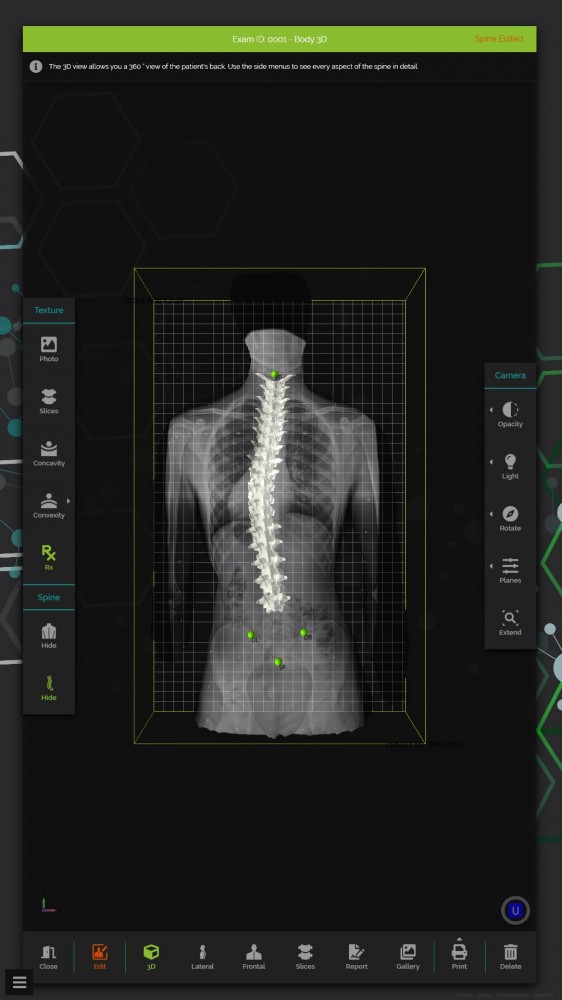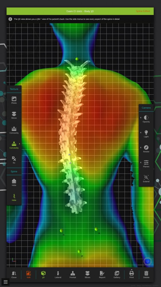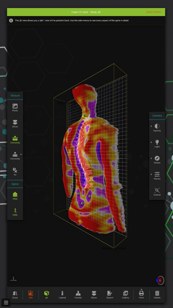 Spine 3D este un nou dispozitiv medical, produs de catre compania Sensor Medica, utilizat pentru reconstrucția tridimensională a coloanei vertebrale. Metoda de scanare a spatelui pacientului este neinvazivă (nu se utilzează radiații). Spine 3D furnizează informații referitoare la parametrii clinici sub formă de rapoarte medicale, utile atât pentru diagnosticarea deformatiilor situate la nivelul coloanei vertebrale precum și pentru efectuarea analizei posturale a pacientului.