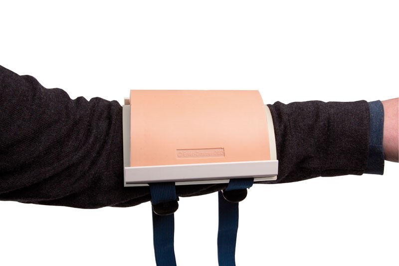 Suportul pentru padul de sutură face posibilă atașarea cu ajutorul unor curele flexibile la brațul sau piciorul unui pacient simulat, pentru o situație de training mai realistă.