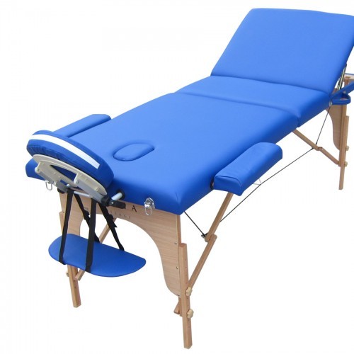 Masa masaj pliabila din lemn masiv de fag cu o sectiune rabatabila.Sistem de rezistenta si stabilitate pe cabluri otelite.Realizata cu piele ecologica poliuretanica PU (mai rezistenta la crapaturi fata de PVC ) si burete cu o densitate mare,rezistent in timp.Reglarea inaltimi se realizeaza in diferite pozitii.Inchiderea si deschiderea mesei se realizeaza foarte usor in doar 10 secunde.Acesorii incluse:-orificiu detasabil facial-suport de aluminiu detasabil pentru cap reglabil -suport pentru sprijinirea bratelor -2 suporturi laterale pentru maini -geanta impermeabila de protectie si transport cu buzunar exterior si bretea