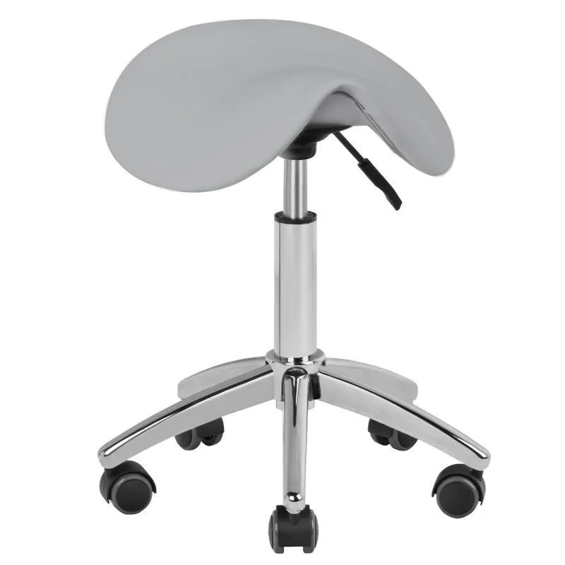 Un scaun cosmetic confortabil, stabil și fără spătar, cu scaun conturat, pe o bază de cinci stele cu roți cauciucate,