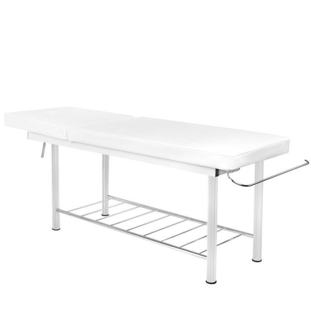 Patul de masaj,cosmetica stationar beneficiaza de mobilitatea in utilizare datorita sectiuni rabatabile care se actioneaza sincronizat pentru a oferi cea mai confortabila pozitie in timpul masajului sau tratamentului aplicat clientului. Datorita acestei flexibilitati masa este recomandata atat centrelor pentru masaj cat si pentru cosmetica , consultatii medicale sau centrelor spa. Deasemenea beneficeaza de un spatiu generos pentru depozitarea prosoapelor sau diferitelor produse.