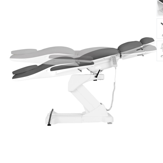 Unghiul la care se află suportul pentru picioare este reglat cu o pârghie manuală . După setarea poziției selectate, o puteți bloca cu ușurință. De asemenea, este posibilă reglarea extensiei suportului pentru picioare , care va fi deosebit de utilă în timpul procedurilor efectuate pe persoane mai înalte, oferindu-le un sprijin mai bun .