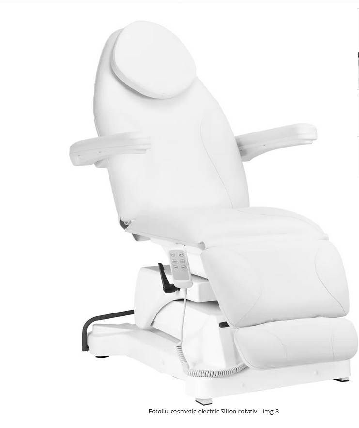 Scaunul electric pivotant cosmetic Sillon Basic se caracterizează prin ușurință în utilizare, funcționalitate și versatilitate. Echipamentul este echipat cu 3 actuatoare controlate de o telecomandă cu fir ușor de utilizat . Scaunul se distinge printr -un scaun profilat ergonomic , mobilitate semnificativă și capacitatea de adaptare la nevoile individuale , datorită cărora va fi perfect în multe cabinete de specialitate.