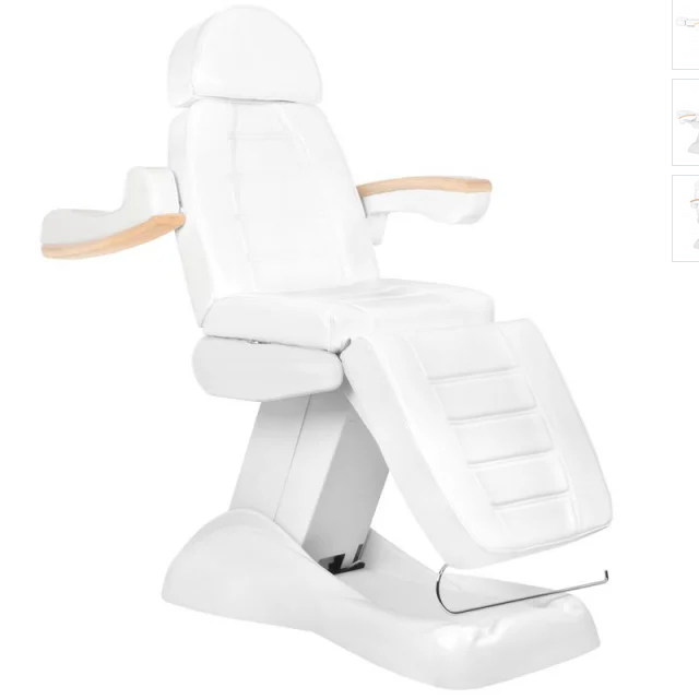 Telecomanda completă ușurează munca. Husa scaunului este ușor de spălat, realizată din piele ecologică care îndeplinește cerințele stricte ale UE. In plus, cotierele sunt finisate cu lemn, usor demontabile daca este necesar, iar gaura din tetiera permite masajul. Un avantaj suplimentar este o saltea încălzită , care permite o relaxare neobișnuită pentru client.