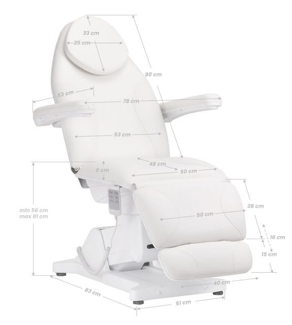 Scaunul electric de frumusețe Sillon Basic se caracterizează printr-un aspect practic, funcționare simplă și universalitate. Este echipat cu 3 actuatoare controlate de o telecomandă cu fir . Se distinge printr-un scaun profilat ergonomic și prin capacitatea de a se adapta nevoilor individuale, datorită cărora va fi perfect în multe cabinete de specialitate.