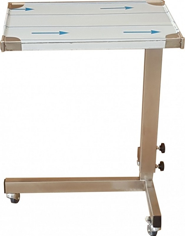 - Este o masa mobila cu o manevrabilitate sporita, dispune de 4 roti pivotante, cadru de sustinere si picioare masa din teava de inox, 1 blat tip tava din tabla de inox, cu inaltime reglabila de la 70 cm la 120 cm, fixat pe 1 picior, dimensiuni 60 x 40 x 70(h) cm. Este ideala pentru utilizarea in cabinetele medicale private, centre si clinici veterinare, centre de tratament ambulator, etc.
