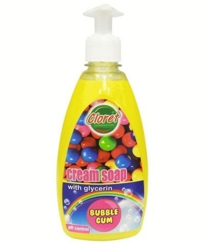 - Se aplica o cantitate mica de sapun care impreuna cu apa, prin frecare formeaza o spuma ce curata si lasa un parfum placut de Bubble Gum pe piele